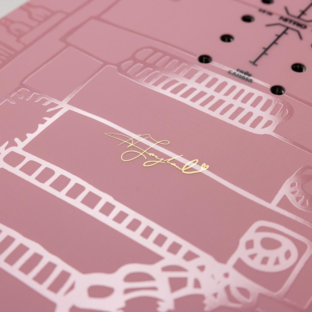 Carbon tape: V-mallinen hiilikuituteippaus puuytimen alla buustaa laudan vastinetta laskijan liikkeisiin.