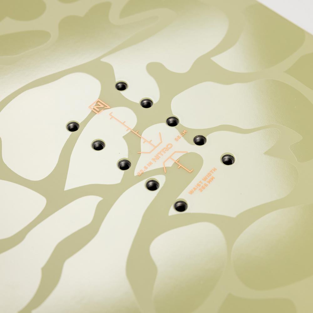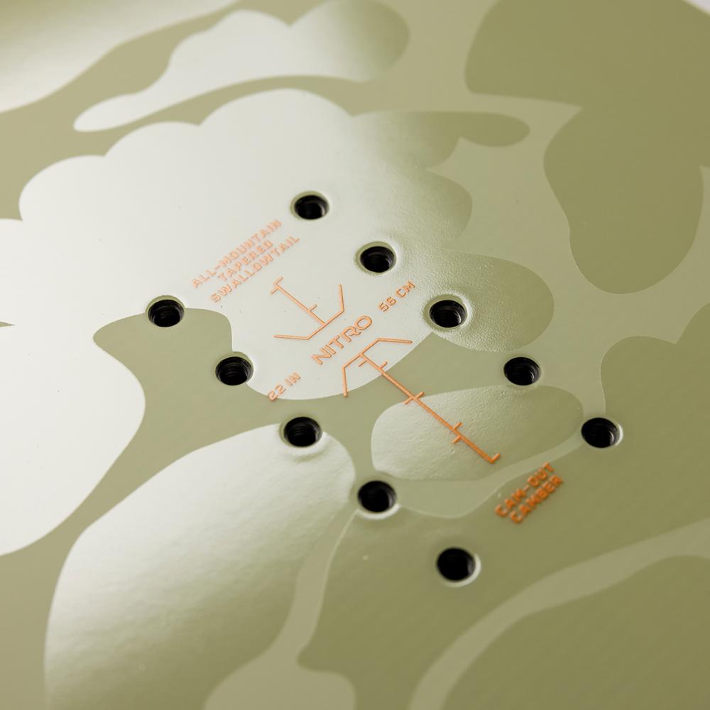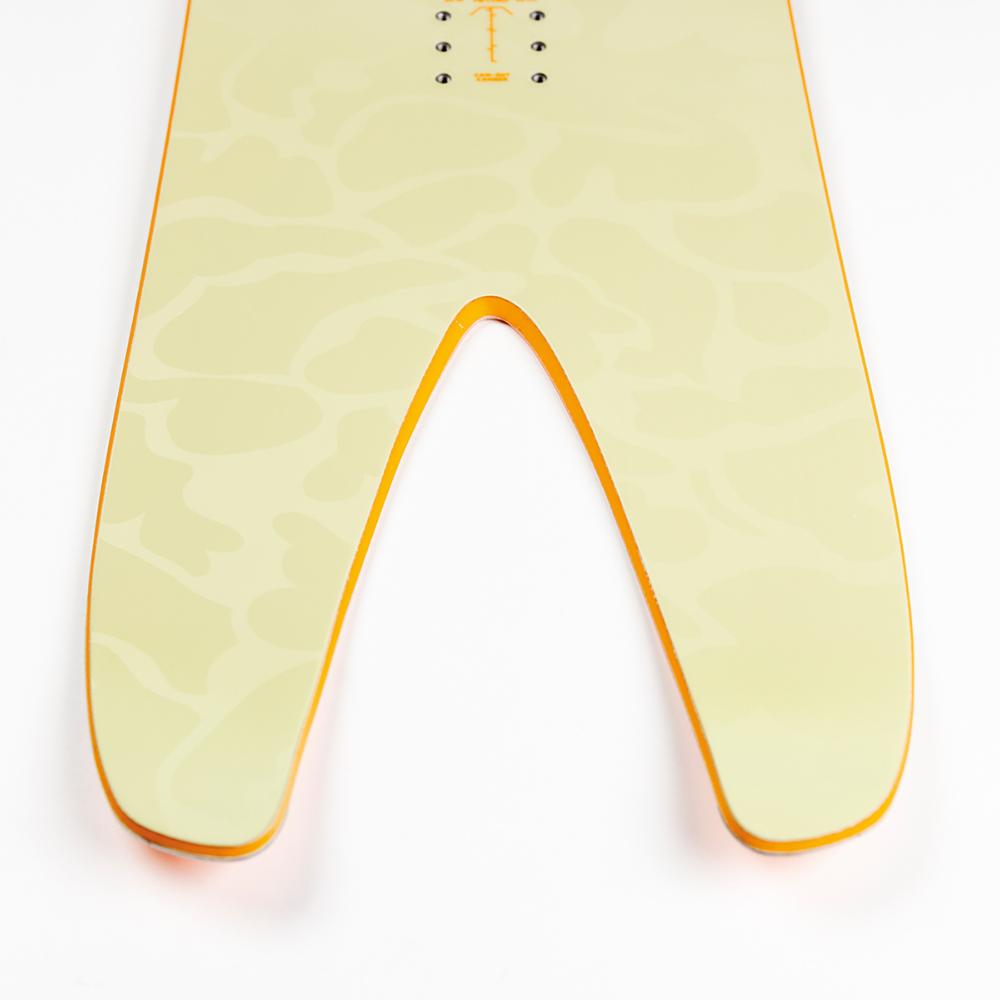 Cam-out -camber: Napakka ja leikkaava jalkavuus siteiden välissä kevenee rockeriksi ennen nosea ja tailia. Täydellinen yhdistelmä kanttipitoa ja leikkisyyttä.