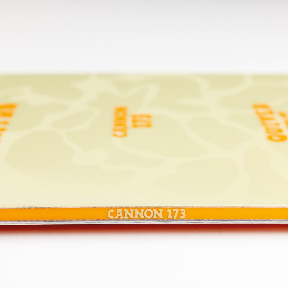 Cannon on näyttävä swallowtail-puuterilauta, joka on täysin omassa elementissään myös hoidetuissa rinteissä. Mitoissa 173 ja 203 saatavana olevan Cannonin tehopituus (kovalla alustalla lumeen osuva mitta) on selvästi laudan pituutta lyhyempi, mikä tekee mallista kokoisekseen ketterän laskettavan.