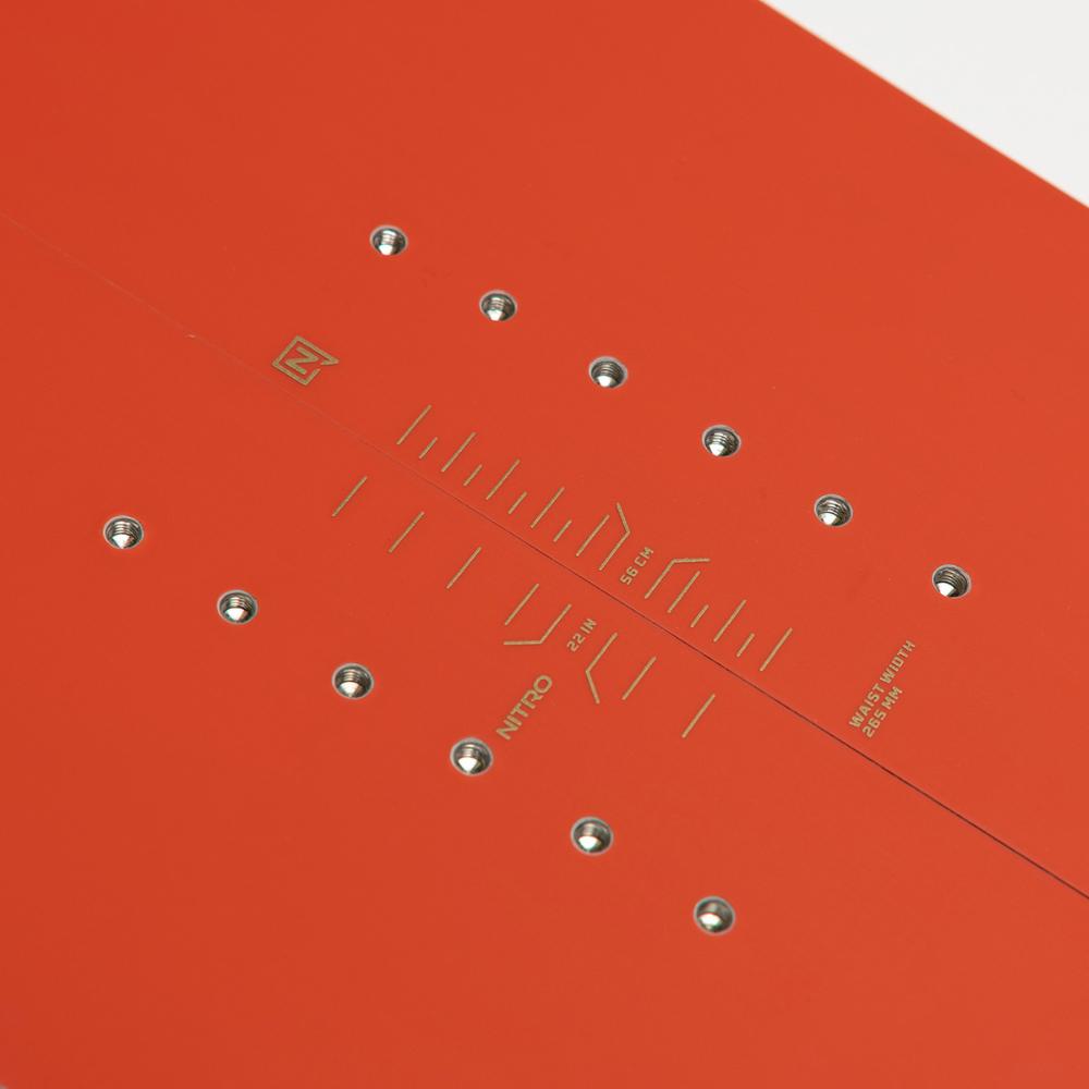 Reflex core profile: Laudan kansi on ohennettu siteiden välissä. Tämä helpottaa hallittavuutta ja vähentää kiertojäykkyyttä, mikä auttaa laudan hallintaa käännöksen alusta loppuun.