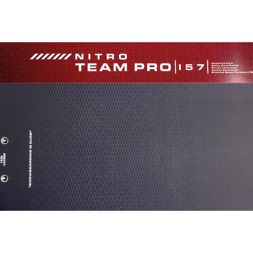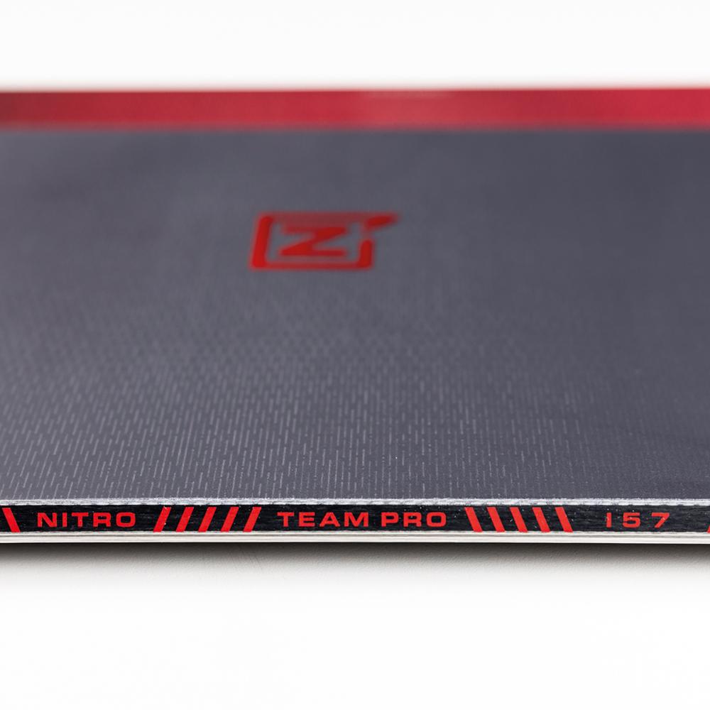 Team Pro on huippuunsa viritetty versio monelle tutusta Team-mallista: Hiilikuituvahvikkeet koko laudan mitalla lisäävät poppia ja herkkyyttä laudan vastaamiseen laskijan liikkeisiin. Team Pro:ssa on myös Nitron nopein pohjamateriaali.