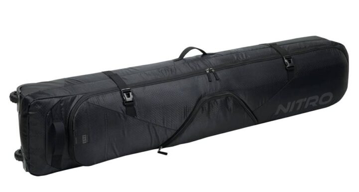 Lumilautalaukku pyörillä. Tracker wheelie boards bag on tilavuudeltaan jopa 90 litraa, joten laudan ja siteiden lisäksi voit pakata laukkuun esimerkiksi kengät, laskuvaatteet tai muita varusteita. Kompressiohihnat auttavat pakkaamisessa.