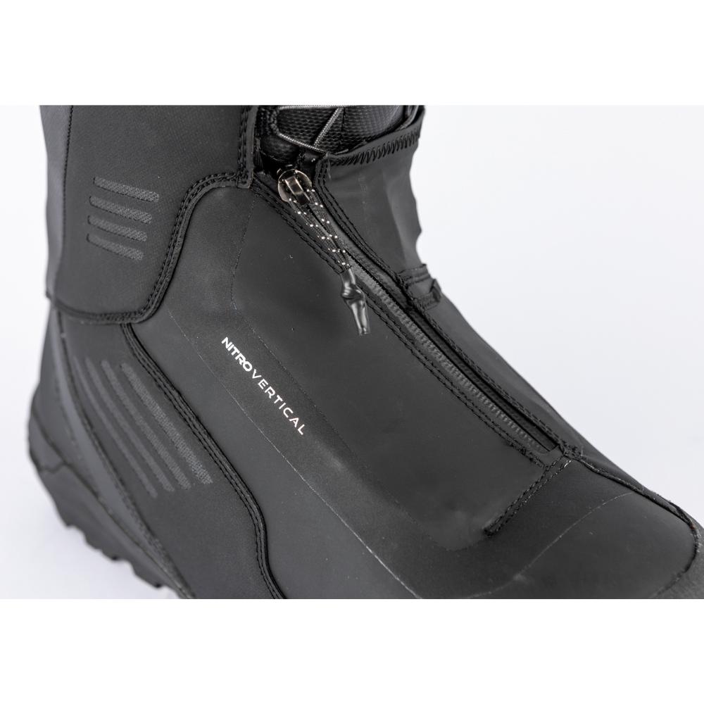 Verticalin jäykkyys ja vaste laskijan liikkeisiin on säädettävissä sekä kuoressa että sisäkengässä Nitron asteikolla 7-9/10. Säärystin suojaa kenkää ja ehkäisee lumen paakkuuntumista. Kantapää on muotoiltu kiipeilyraudoille. Kengän materiaalit kestävät toistuvat potkaisut splittisiteisiin ja rautoihin. Vibramin ”ylähyllyn” pohjamateriaalit ja -muotoilu varmistavat etenemisen jäätiköillä ja kivikoissa.